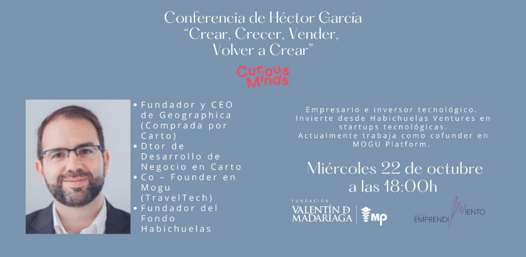 La Fundación Valentín de Madariaga acoge una nueva cita del ciclo Curious Minds, dentro del Proyecto Emprendimiento, con la conferencia “Crear, Crecer, Vender, Volver a Crear”, impartida por Héctor García, empresario e inversor tecnológico con una amplia trayectoria en innovación, liderazgo y desarrollo de startups.