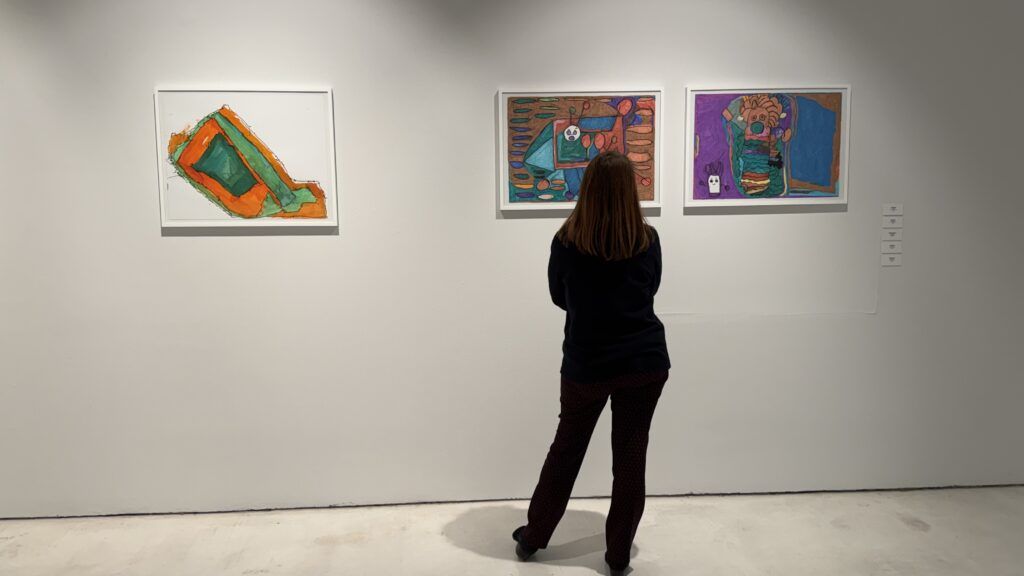 Almazuela reúne obras de 38 artistas vinculados al art brut, junto con una intervención realizada por la artista Adriana Torres Silva y participantes del Proyecto DISTRA. La exposición presenta pintura, escultura, textil y videocreación desarrollados desde prácticas no académicas y lenguajes personales.